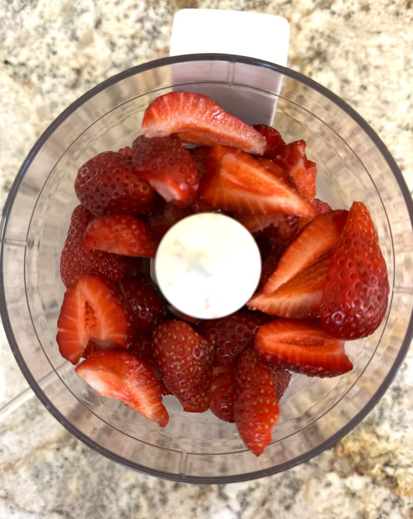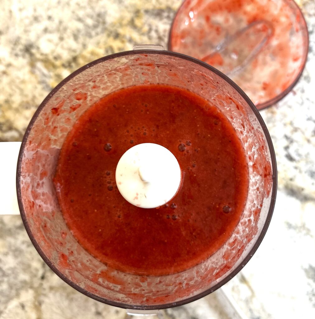 - Place the berries in a small food processor and blend until you have a smooth puree-like liquid