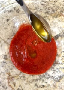 - Pour puree into a medium bowl and add honey.