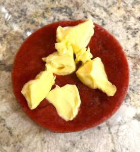 - Allow butter to reach room temperature and cut into one-inch pieces, and add to berries.